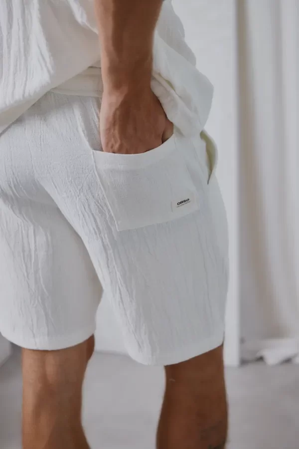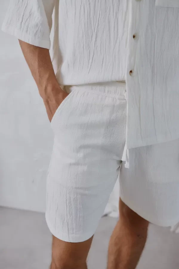 La bermuda Kaia es una prenda atemporal, confeccionada en red texturada que aporta ligereza y estilo.