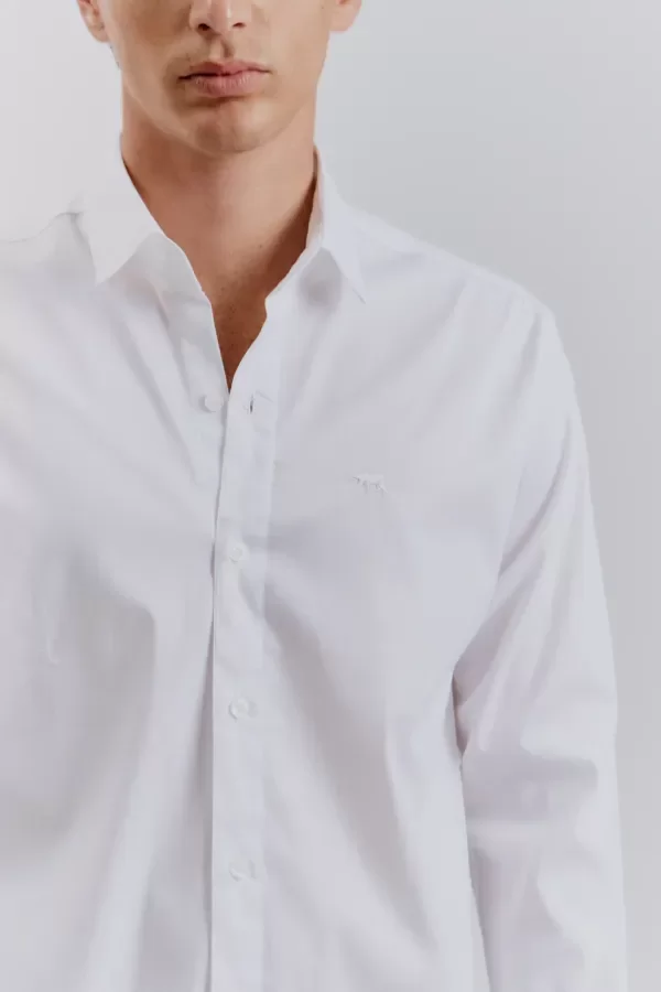 Camisa clásica "Ramiro", confeccionada en poplin liso, ideal para lucir elegante en cualquier ocasión. Su detalle de oso bordado al tono y el botón personalizado al tono le aportan un estilo distintivo que no pasa desapercibido.