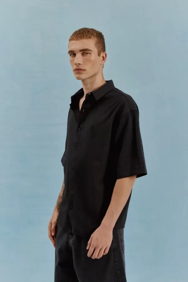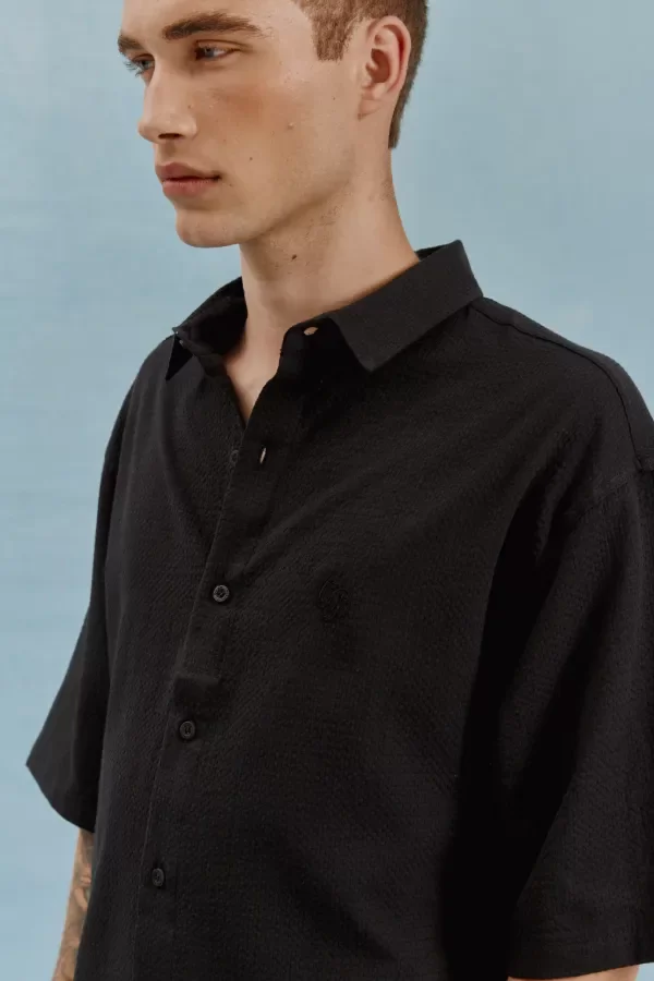 La Camisa Santorini ofrece un estilo relajado y moderno con su corte boxy fit y confección en tejido camisero texturado. Ideal para un look fresco y sofisticado.