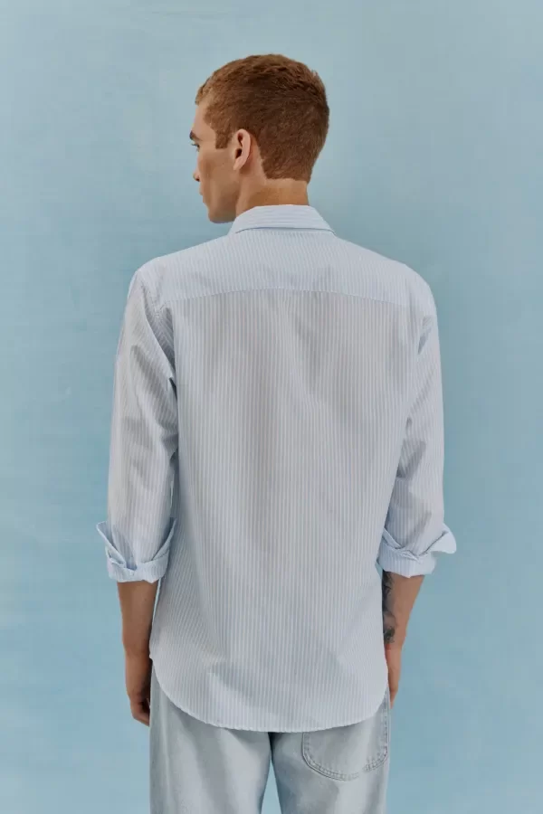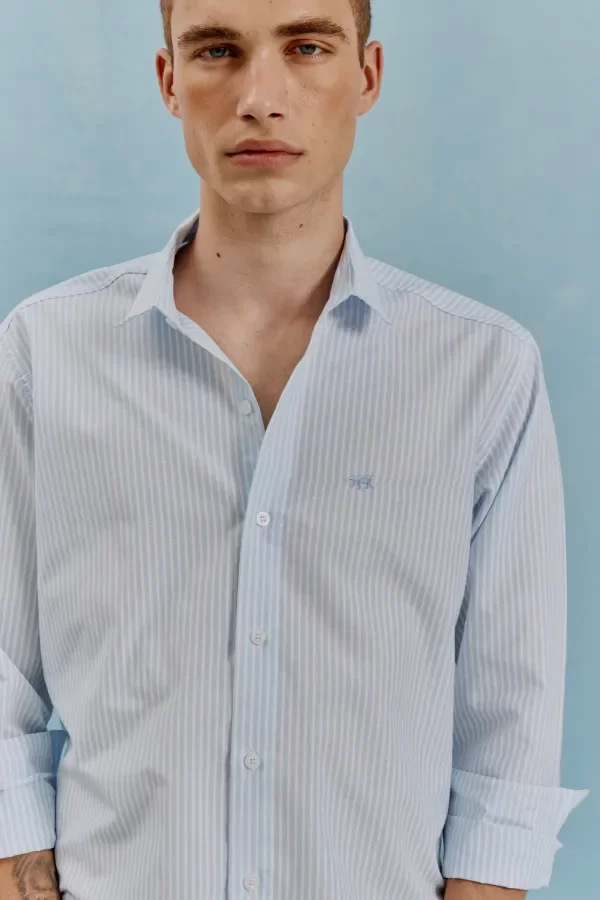 La camisa clásica rayada "Winter" es un must-have. Confeccionada en poplin rayado, incluye un elegante oso bordado al tono en el delantero y botones personalizados al tono en la cartera.