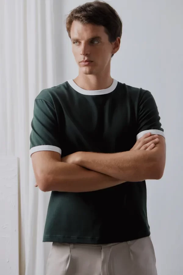 Presenta detalle de cuello y puños a contratono, que realzan su diseño simple con un toque distintivo.