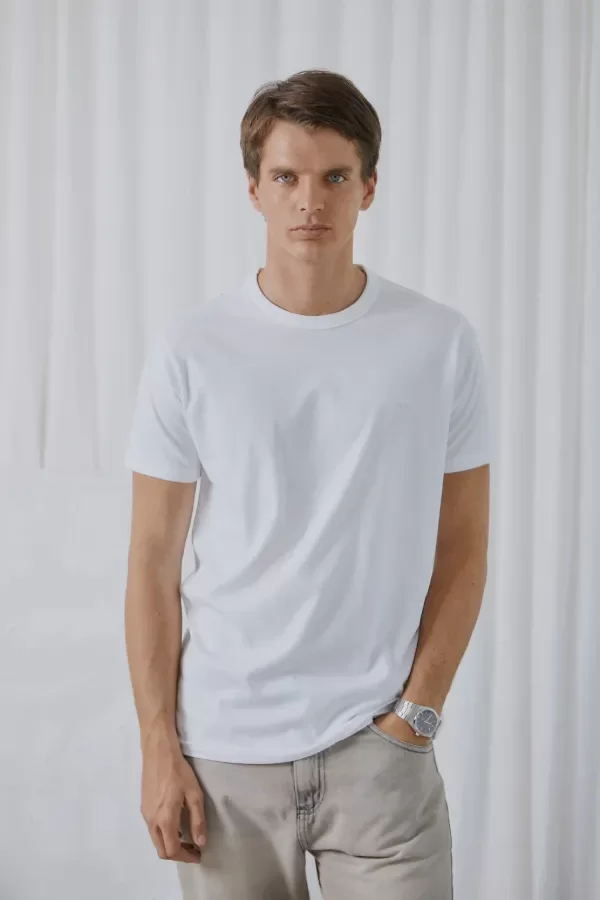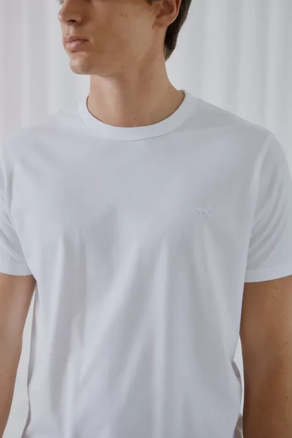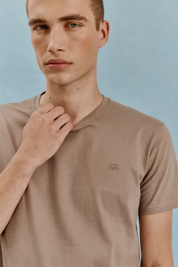 ¡La Remera Básica "Palau" es perfecta para vos! Está confeccionada en jersey de algodón peinado y viene con un detalle de oso bordado que le da un estilo único.